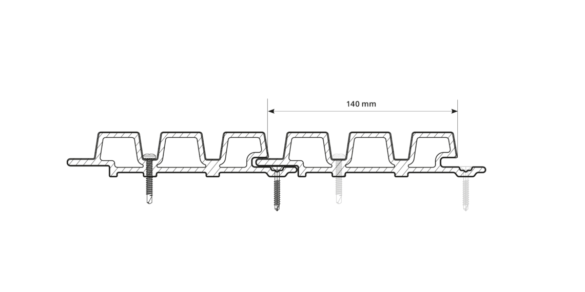 De WEO-schroeven van roestvrij staal SR2 4,2 x 38 mm kunnen samen met de profielen worden besteld. Voor de bevestiging van een houten of metalen draagstructuur is het raadzaam om advies in te winnen bij een specialist.